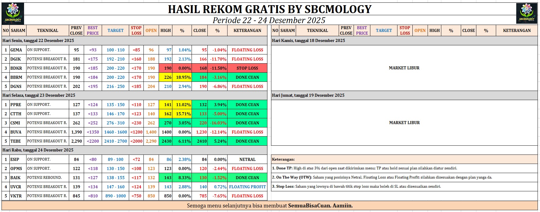 Catatan: Market lagi kondisi bull run. Kalau bearish tinggal jalan2 aja jangan maksa.