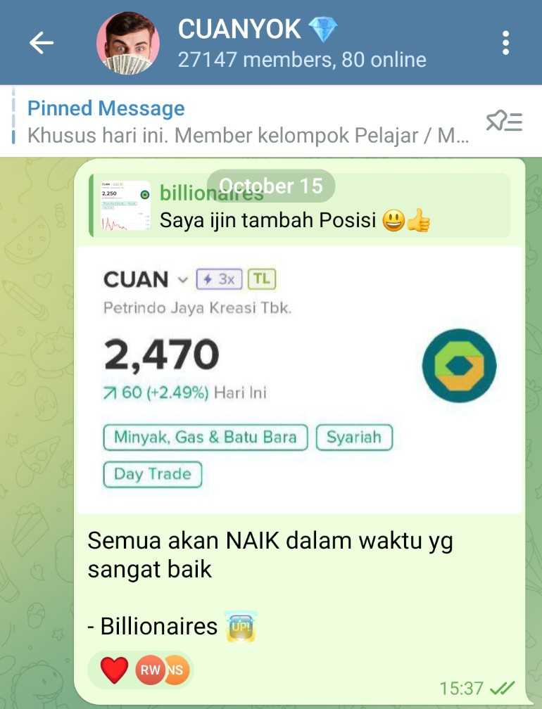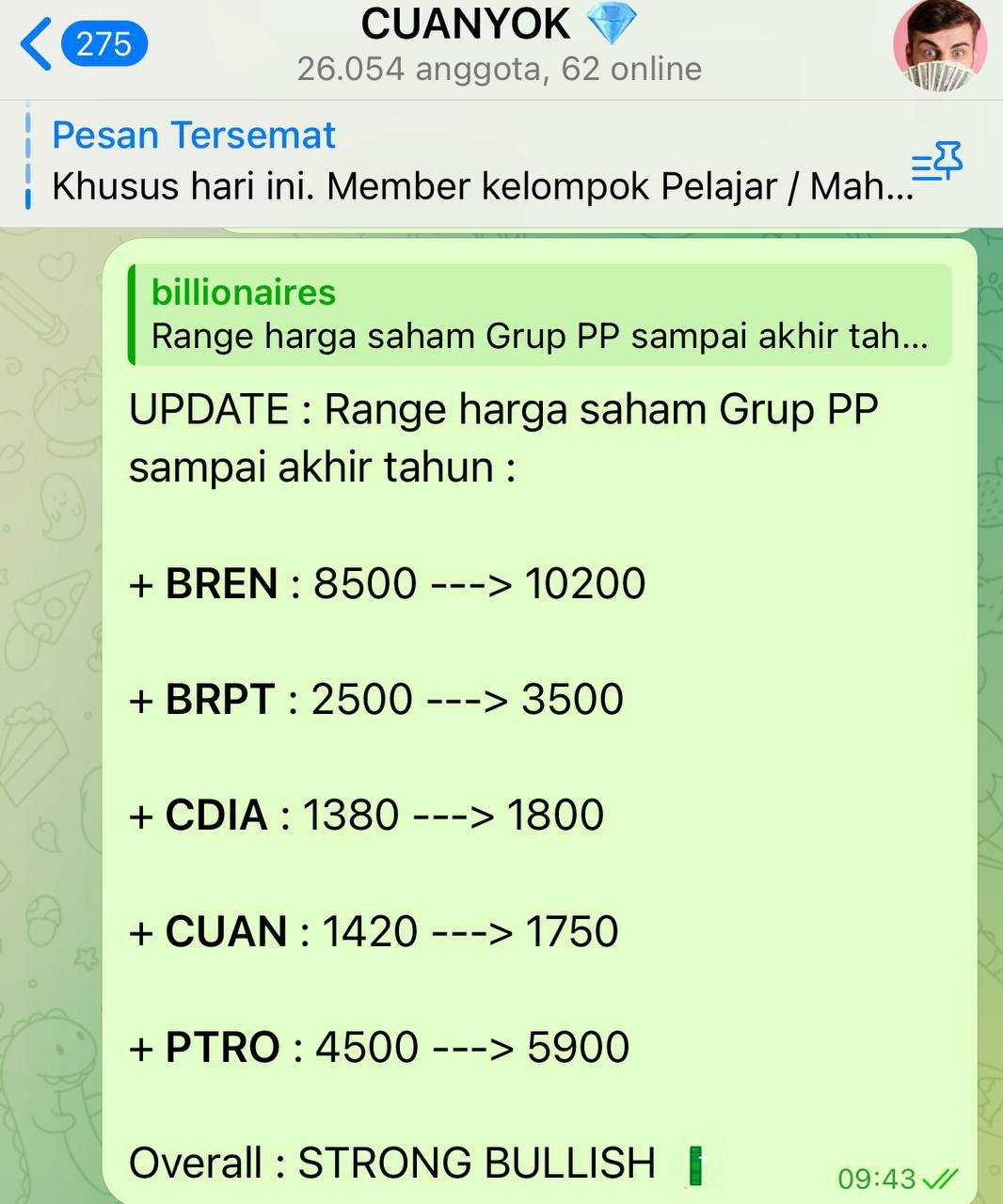 @Baginda1811 waduhh broo baca dlu yaa,, tidak ada membandingkan disini,, saya bicara soal fear nya,, saya kasih contoh $CUAN, itu emiten konglomerat owner pak pp,, begitu msci trs di banting harga nya jauhh, fear negatif banyakk, "msci tmpt buang asing",, "di iris tipis²",, "ga bakal ke urus lagi karena sudah target masuk msci",, fear nya banyakk Broo,, tapi liat sekarang harga melonjak jauhh,, bagi yng kena fear dan CL itu menyesal