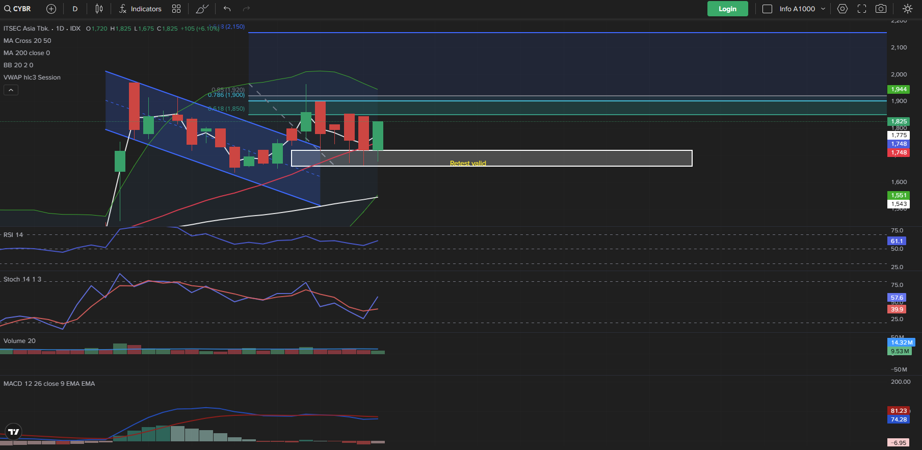• Breakout 1.800 berpotensi memicu momentum bullish lanjutan, Boss