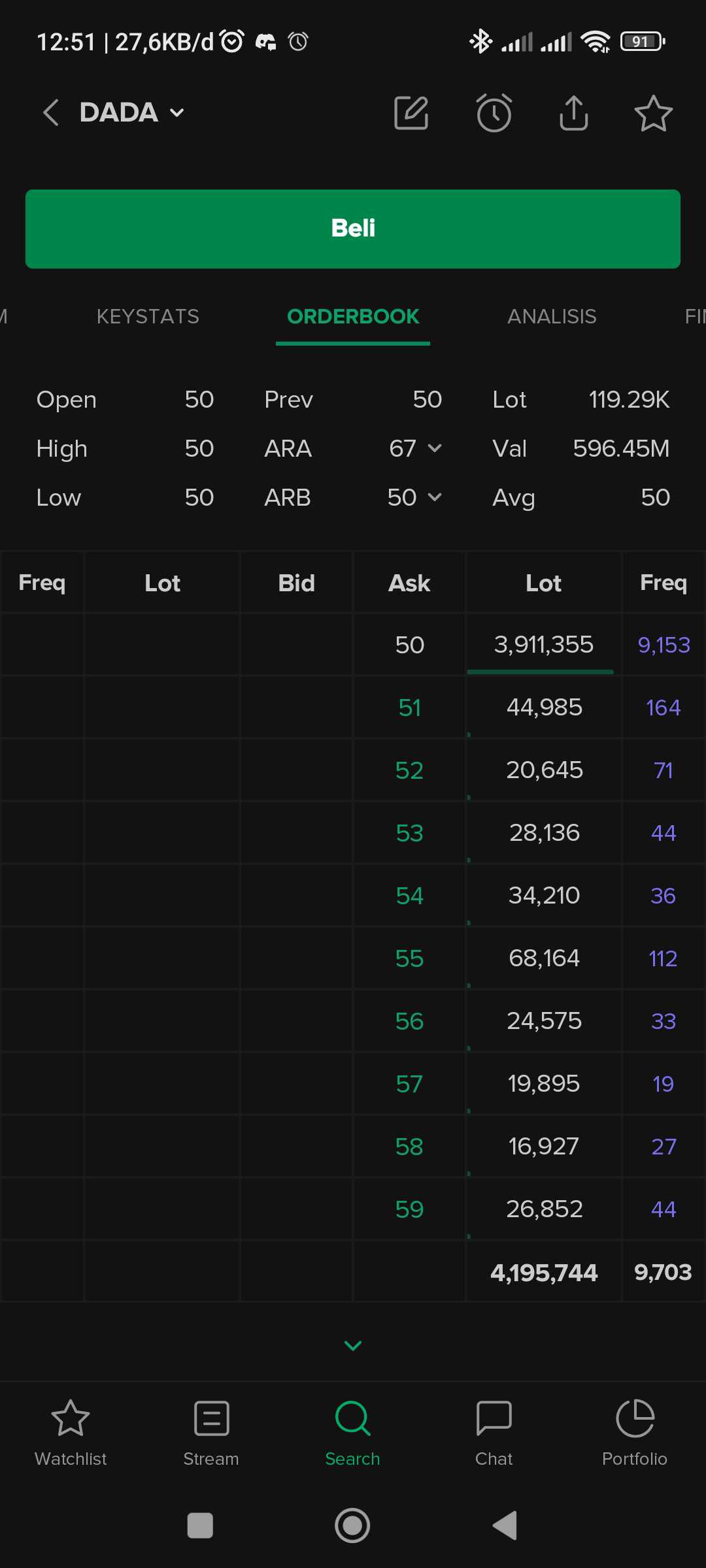 @juniardi2423 3,9 juta lot ini harus di telan dulu supaya bisa gerak ke 51 selama tembok ini tida bisa di tembus ya $DADA stay di harga 50 perak dan mungkin masuk FCA