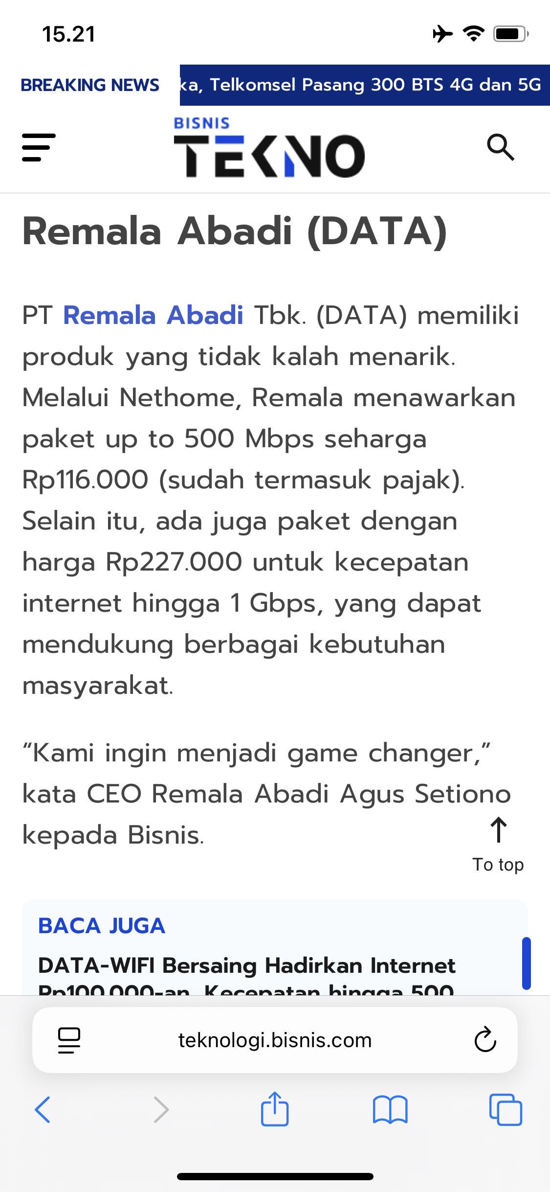 3. Dukungan Grup Djarum: diakuisisi 40% oleh Iforte (anak usaha TOWR), artinya punya backing kuat dan kredibel.