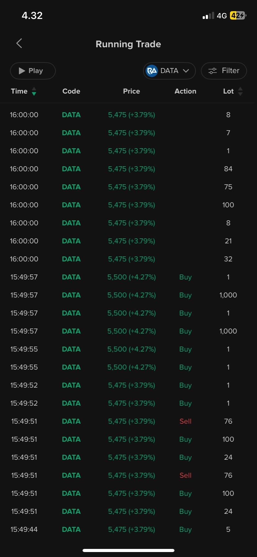 $DATA Minggu lalu masuk diaini harga 5.400, TP tipis tadi pagi di 5.525. Karena yakin bakal nebar cuan, akhirnya masuk lagi.