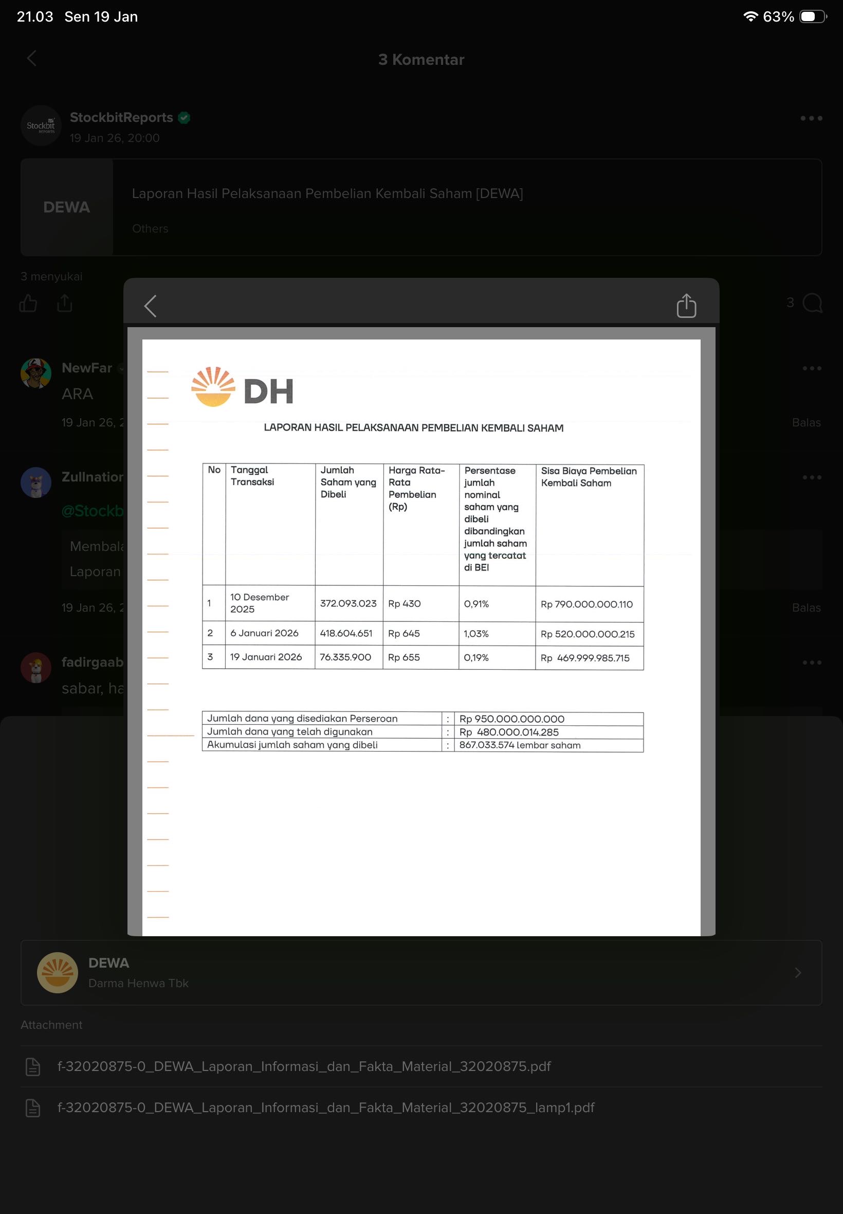 JAKARTA, STOCKWATCH.ID – PT Darma Henwa Tbk (DEWA) kembali melaporkan hasil pelaksanaan pembelian kembali saham (buyback) perseroan. Hingga pertengahan Januari 2026, emiten jasa pertambangan Grup Bakrie ini telah menggelontorkan dana ratusan miliar rupiah untuk menyerap sahamnya dari publik.