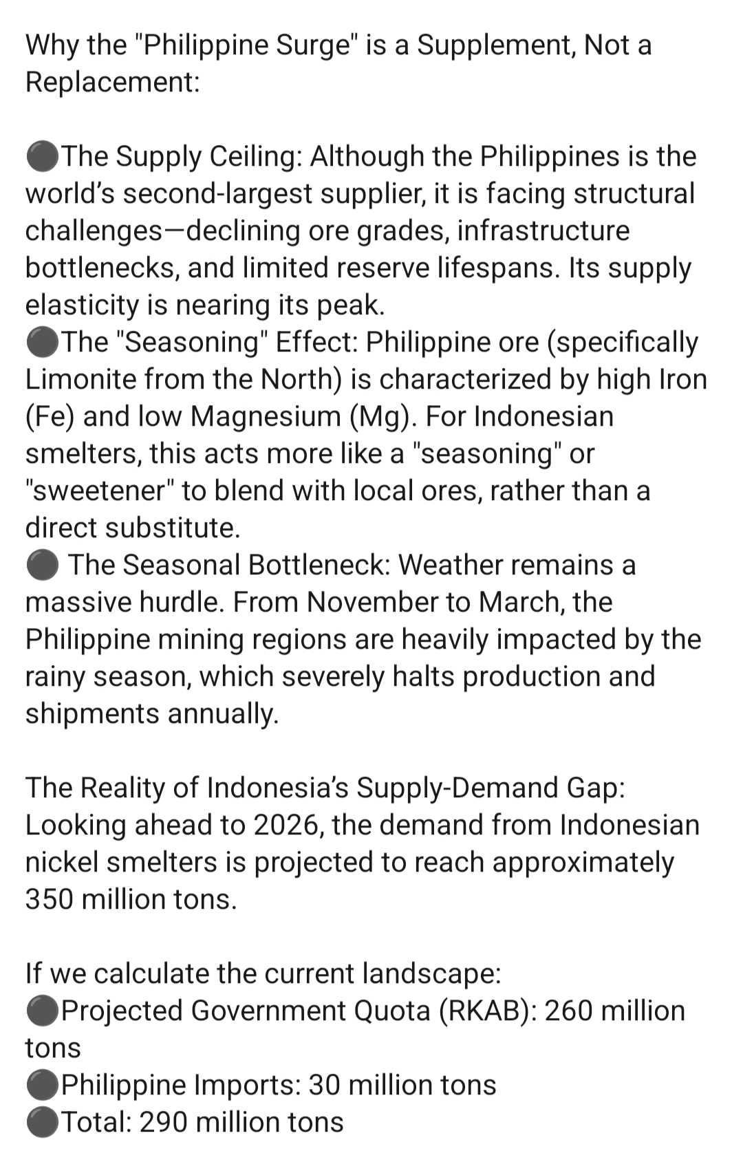 maka apa yang terjadi, output itu berkenaan dengan variable costnya, smelter jadi kerja lebih ekstra. jadinya apa? bisa jadi MC naik signifikan. makanya 30% potongan RKAB tidak mungkin 100% kembali sepenuhnya sesuai dengan kapasitas smelter yang ada karna pengolahan biji nikel filipin ini, smelter ekstra kerja keras.