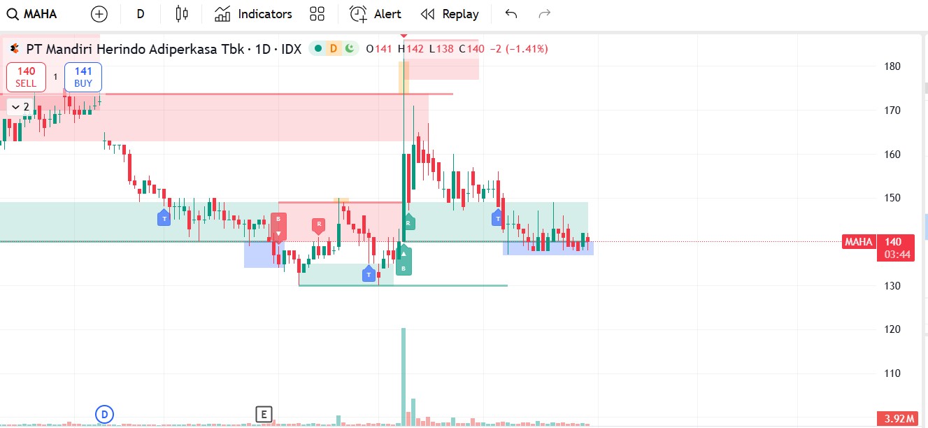 $MAHA masih kureng karena lagi proses buyback, pengendali cuma nungguin buangan doang dr ritel. kl mau coba entry risk reward 1:1 tp 150, SL 130. pengendalinya pelit ini g usah berharap lebih, trx juga isinya cuma ritel2 doang. bijaknya cari emiten lain mumpung LK pada keluar. $DOID $ACES