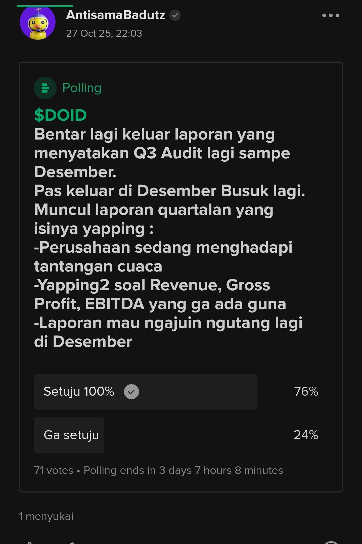 hutang kok sampai 8,29t $DOID, nanti kalau rugi kurs lagi gimana, klw cuaca buruk gimana, gimana ngelunasinya ?!