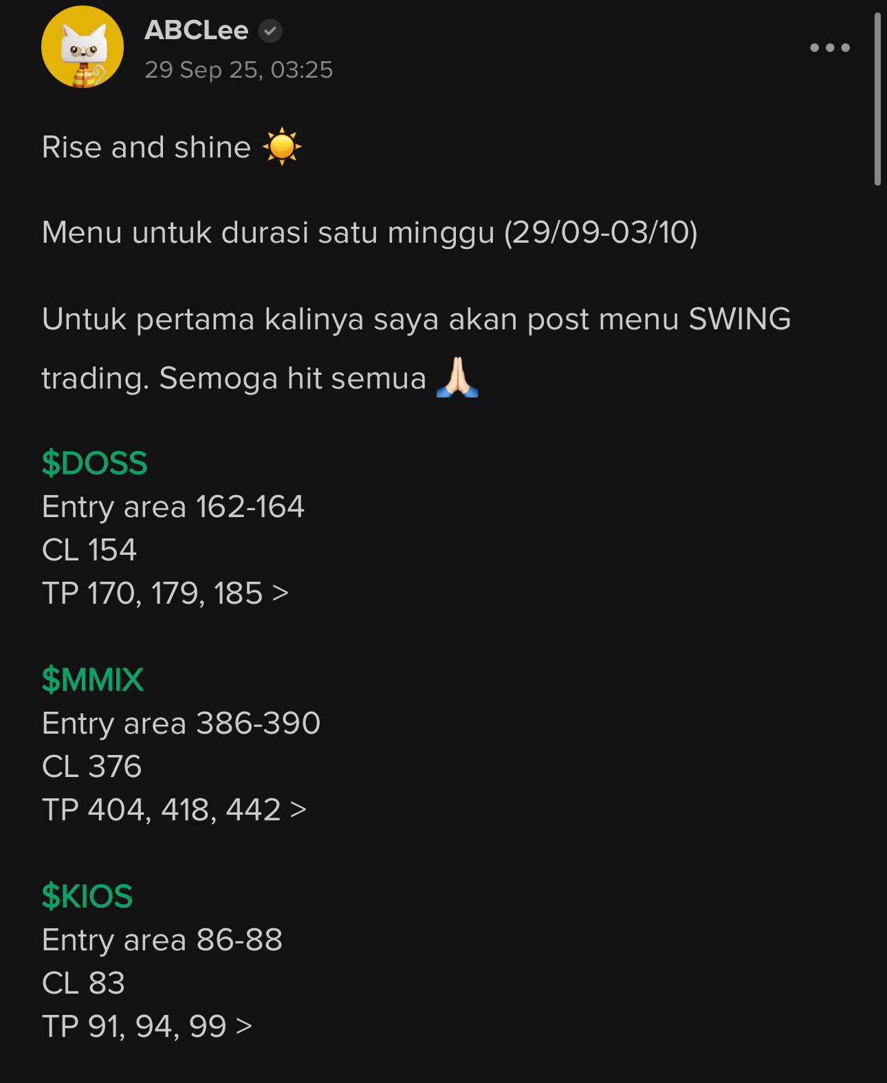 Untuk menu harian, sudah saya post hari minggu pagi, boleh dicheck dan follow. Selalu ingat ini hanya rekomendasi bukan ajakan Jual dan Beli, DYOR. β οΈ