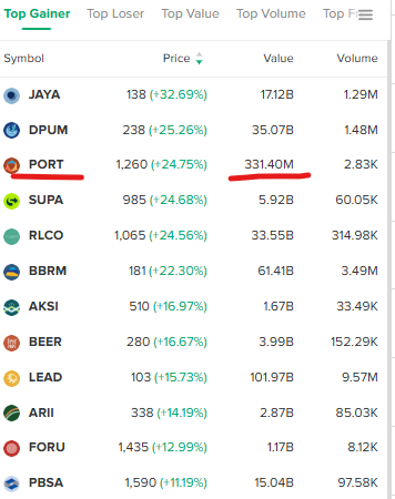 $PORT Goreng Saham Modal Kurang dari 1 Milyar