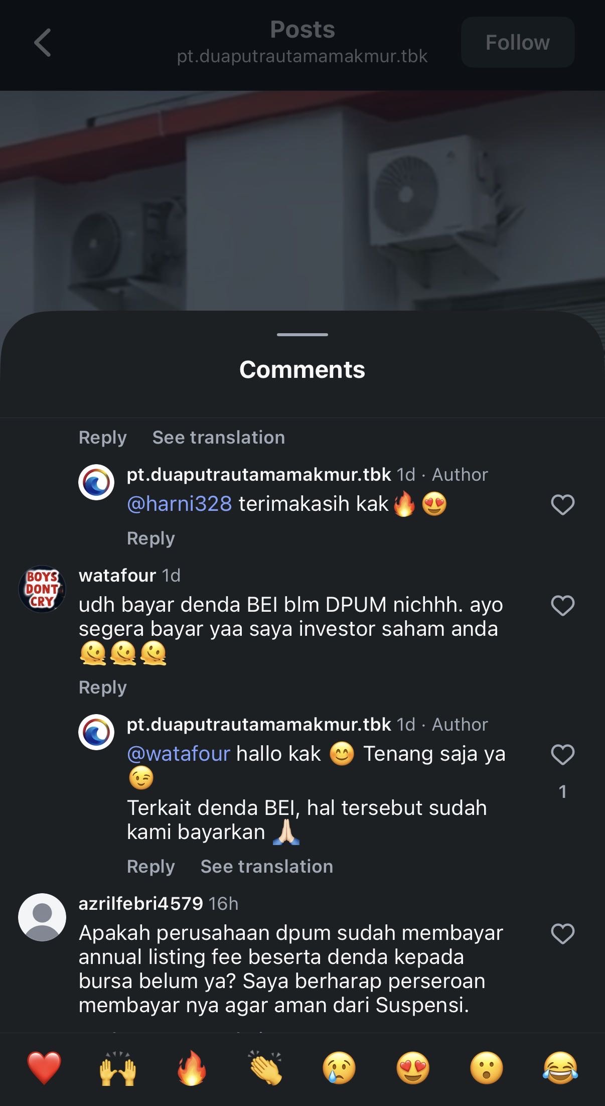 Sedikit berbagi insight untuk emiten $DPUM mungkin ini menurut saya pribadi ya ,emiten ketika sudah pernah suspend lama dan unsuspend sudah ada perjanjian untuk membayar pajak rutin maupun pajak taunan alf itu syarat untuk membuka suspensi saham , sedangkan dpum ini sudah bukak dan sudah lama dia menjadi saham biasa jadi ya pajak alf nya aman, ini mungkin telat karna memang perusahaan sibuk ngurusin berkas" proses akuisisi tuh banyak banget dan ribet, apalagi perusahaan juga harus kirim surat ke BEI kenapa saham nya naik jadi jadwal perusahaan nya sibuk , mungkin karna ini telat bayar pajak alf nya izin nampung besok Rabu *DYOR*