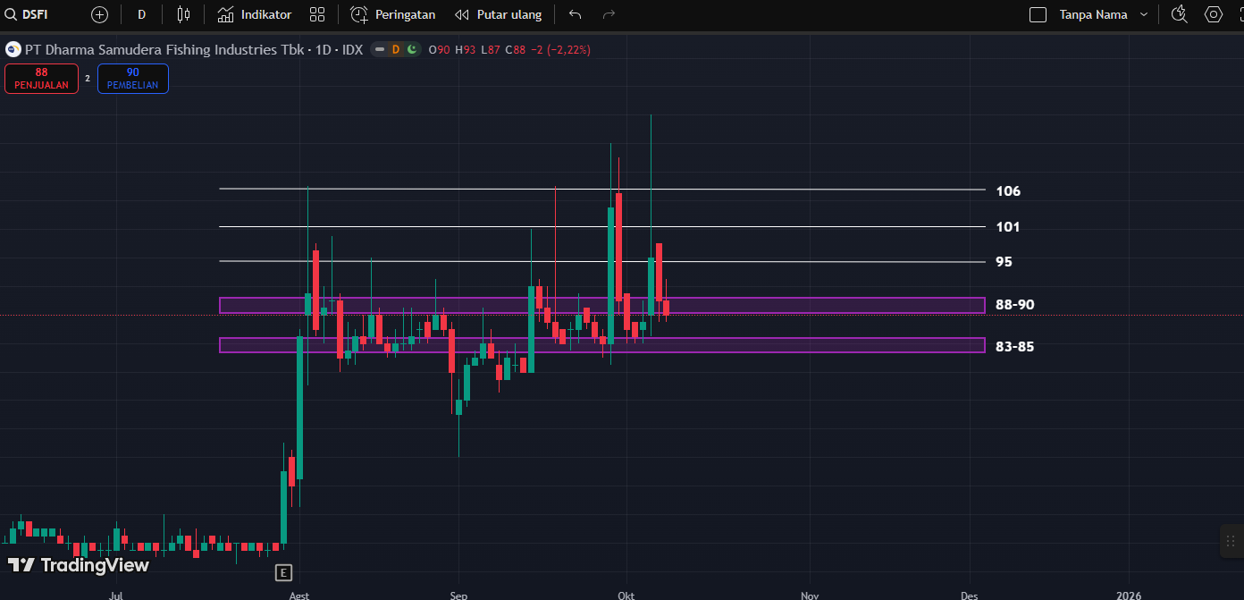 1. Hari 1ā2: Tunggu atau akumulasi di area 85ā86.