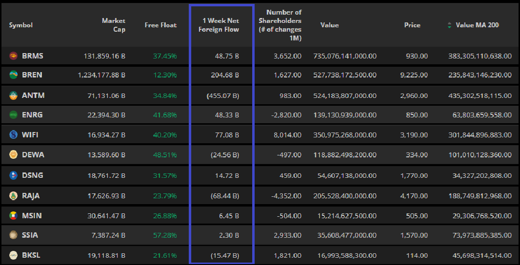 1 Week Foreign Flow - substantially positive for BRMS BREN $ENRG $WIFI $DSNG