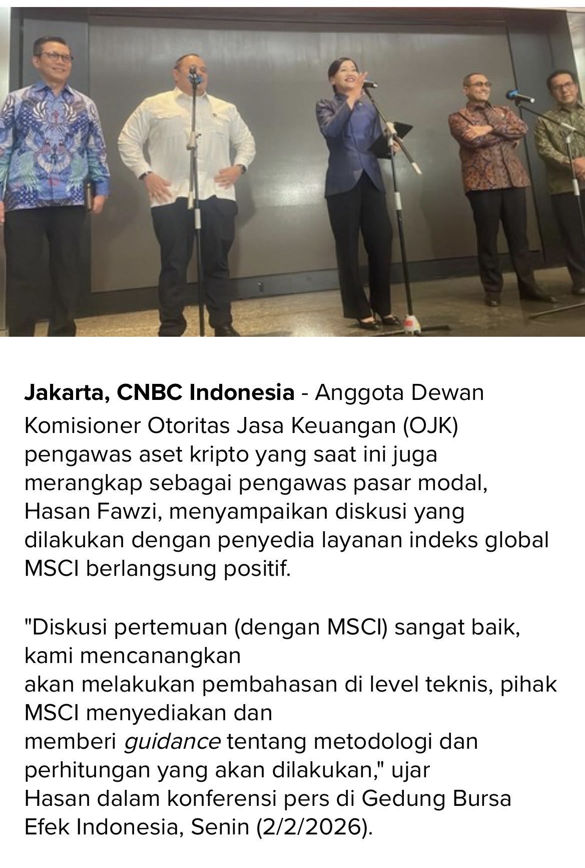Hasil pertemuan dengan MSCI positif kata nya.