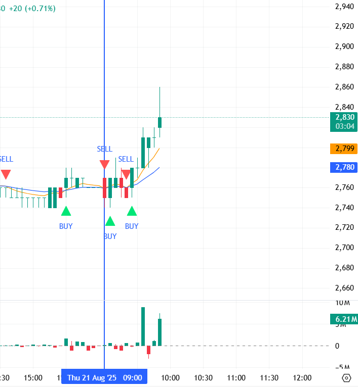 SINYAL: Koreksi tajam setelah rally — gap down, volume turun, momentum sangat lemah untuk rebound.