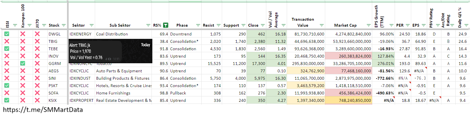 * Notes: Data RS%, EPS Growth bisa diakses lewat SMMartData Telegram Bot.
