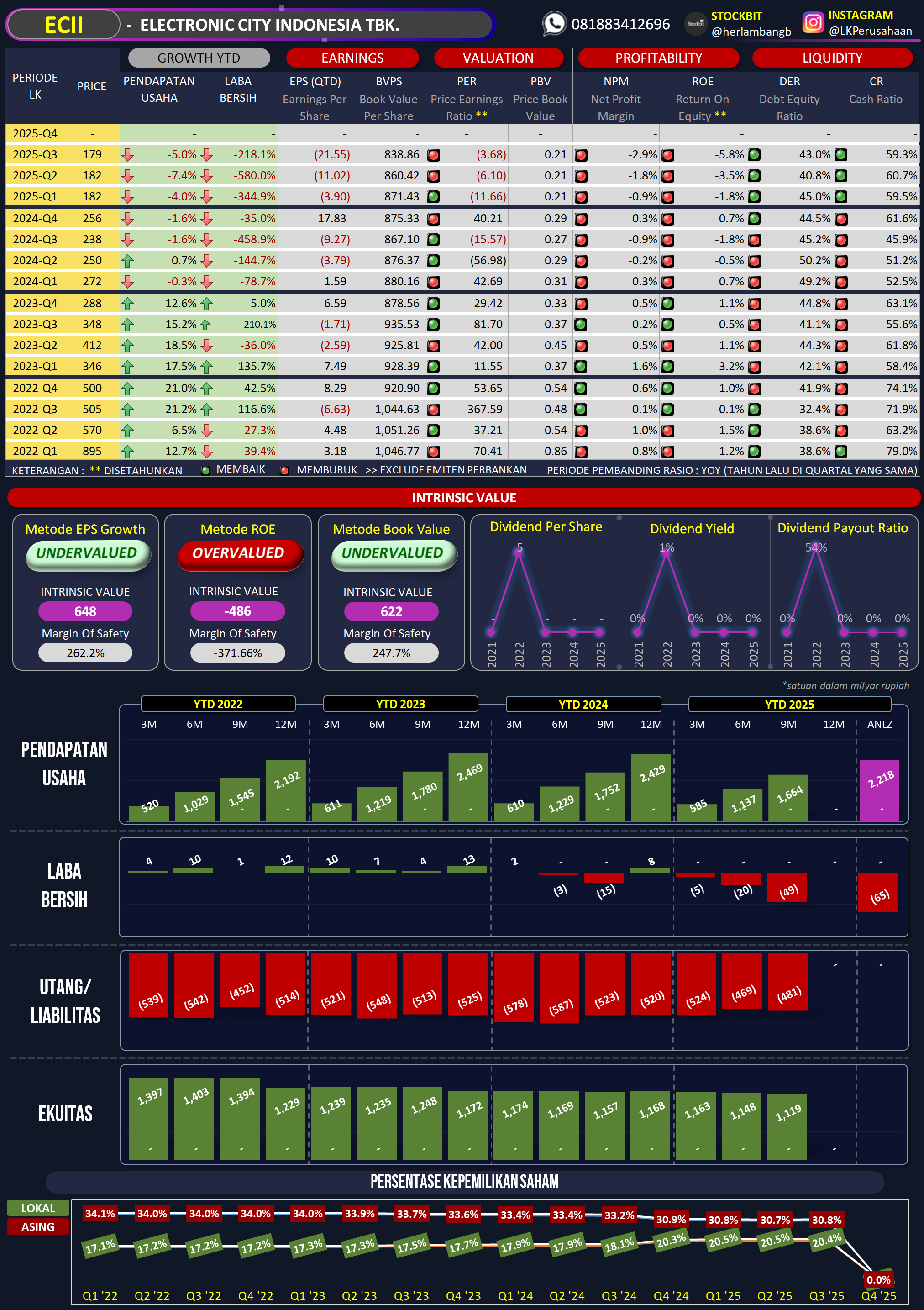 ECII sekarang dihargai 188 dengan cash per share 174. Undervalue? Or value trap?