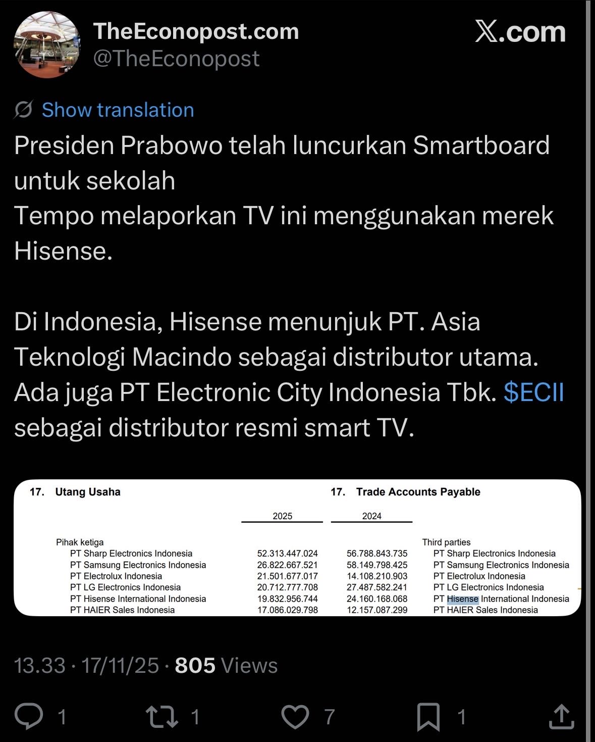 ⢠Jika ECII mengembangkan e-commerce dengan sangat agresif, memperkuat logistik + gudang ā bisa jadi āretailer teknologi + distribusiā besar.