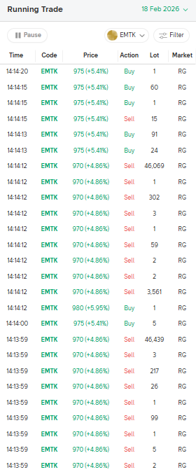 $EMTK update hari ini. Harga tertahan di resist, besok ada 2 opsi bisa jadi koreksi dan jika tidak koreksi besok akan ada ledakan besar. Karena 4 hari terakhir asing sudah akum.