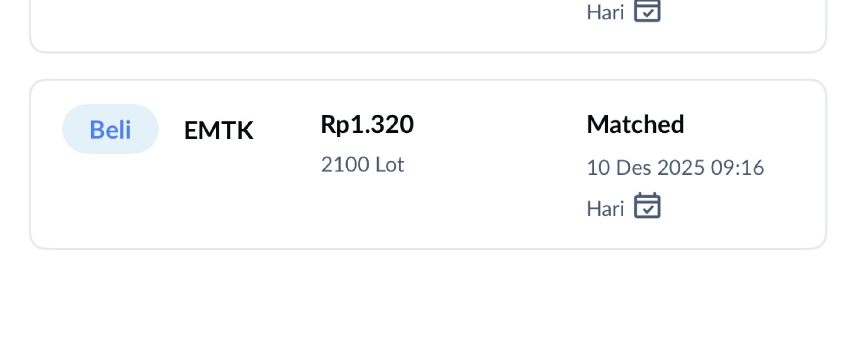 $EMTK astaga emtk yg ku hold beberapa minggu ini biarpun merah, hari ini terlepas krn settingan TP. padahal masih mau hold😭😭.