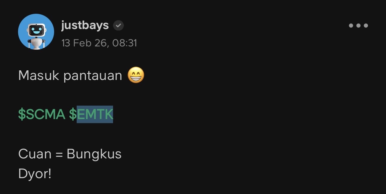 š $EMTK terpantau borong 2,68M lembar saham SCMA di harga Rp258 - Rp284/saham.