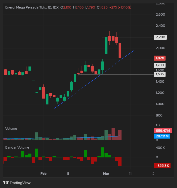 $ENRG kemarin terkoreksi sangat dalam menuju area gap di bawah, sudah layak untuk di pantau. area support ada di 1700