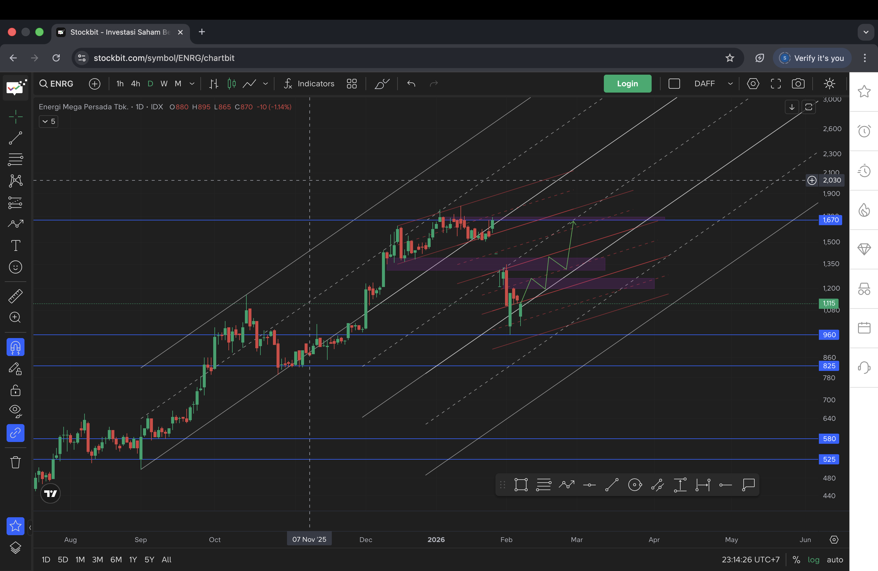 Dari Analisis Outlook di bawah ini untuk short term, perkiraan harga $ENRG akan balik ke range harga 1600-an.