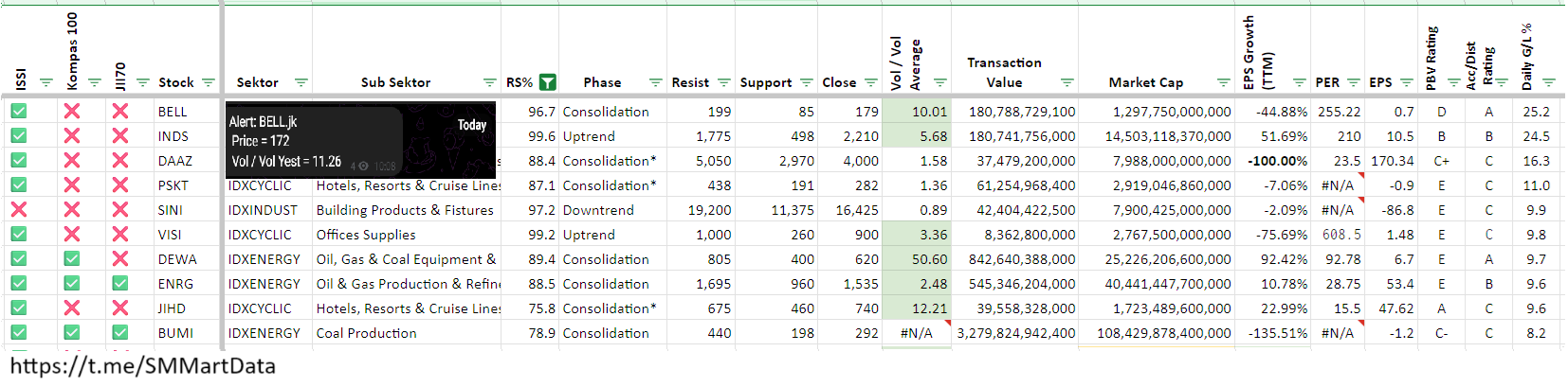 * Notes: Data RS%, EPS Growth bisa diakses lewat SMMartData Telegram Bot