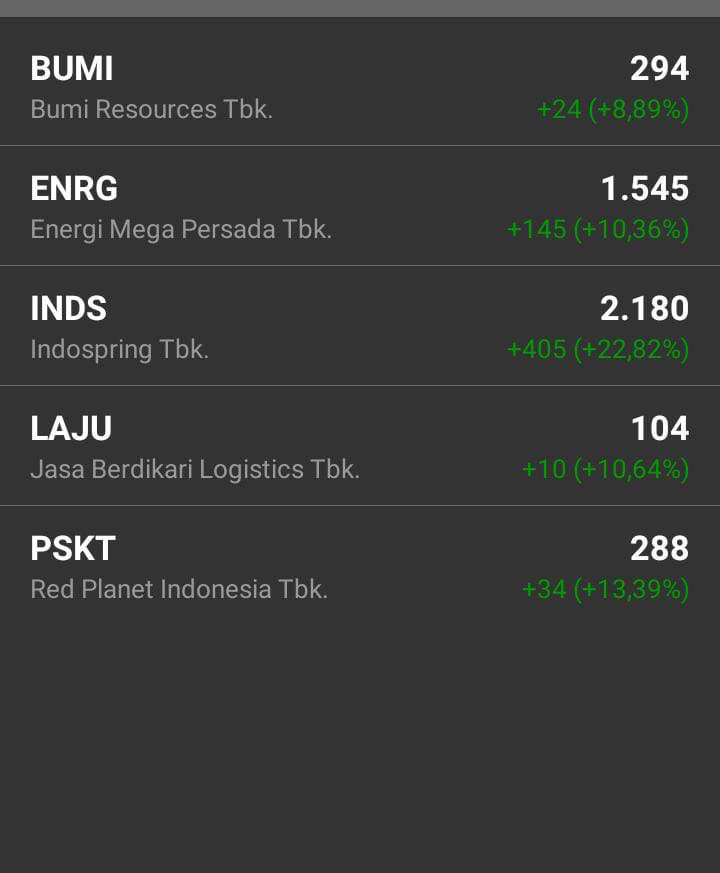$ENRG seperti dibahas https://stockbit.com/post/28385567 gap nya ditutup. $DEWA bisa jadi berpotensi juga.