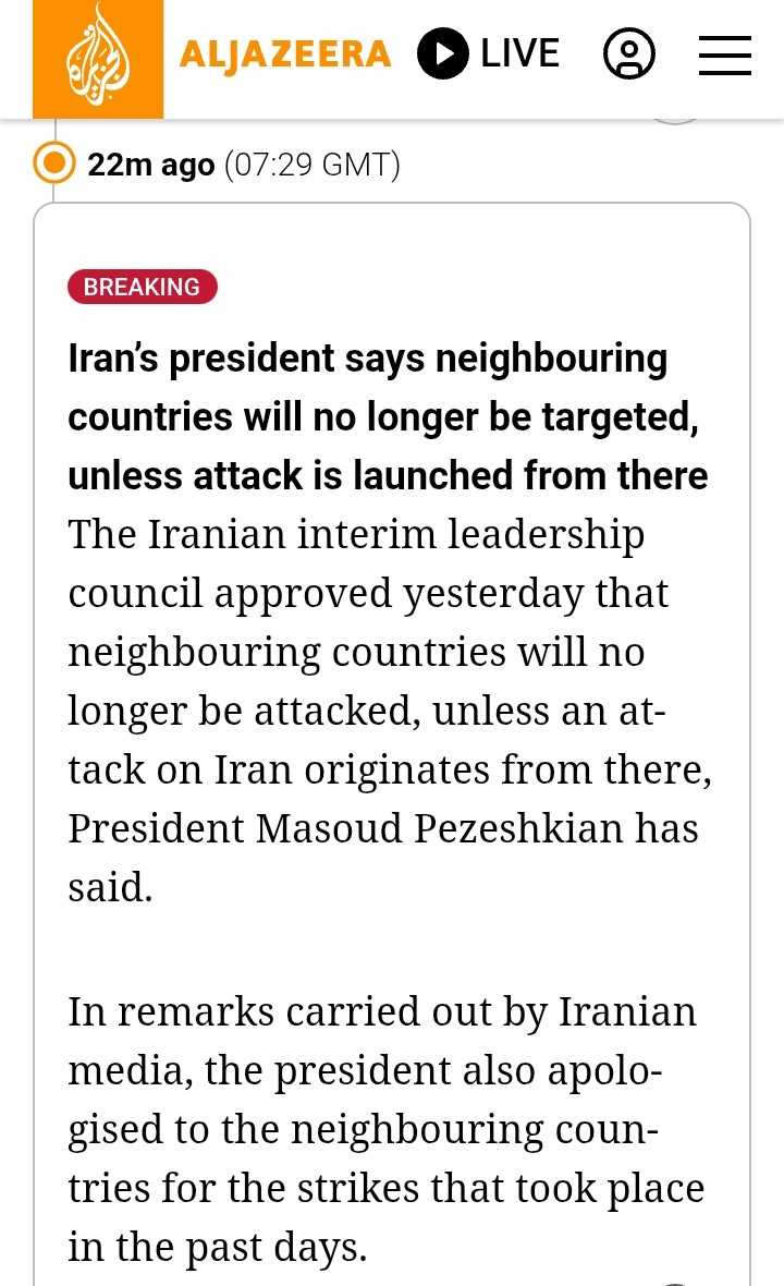 ā Iran tidak akan lagi menyerang negara tetangganya, selama serangan yang masuk ke Iran tidak bersumber dari negara-negara tersebut.