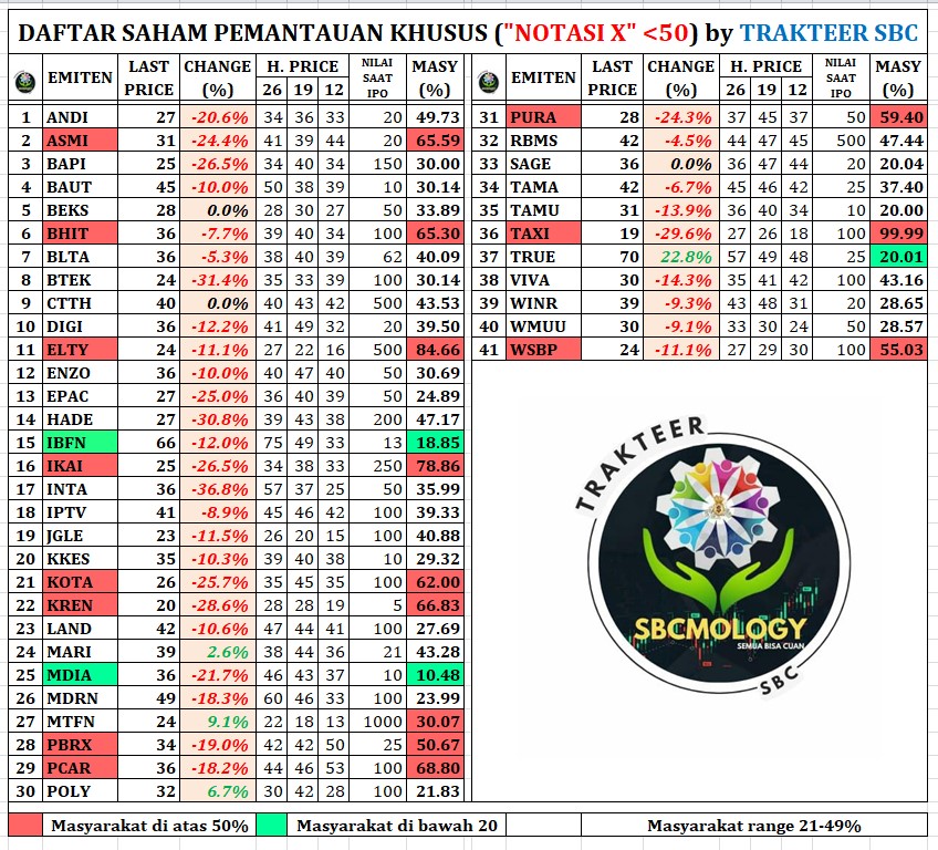 ✔️jika emiten ingin kembali normal, maka perusahaan harus berbenah. byk cara,, salah satunya aksi akuisisi,, backdoor listing, buyback saham kembali maupun "push" harga kembali ke rata rata >51 di akhir periode evaluasi.