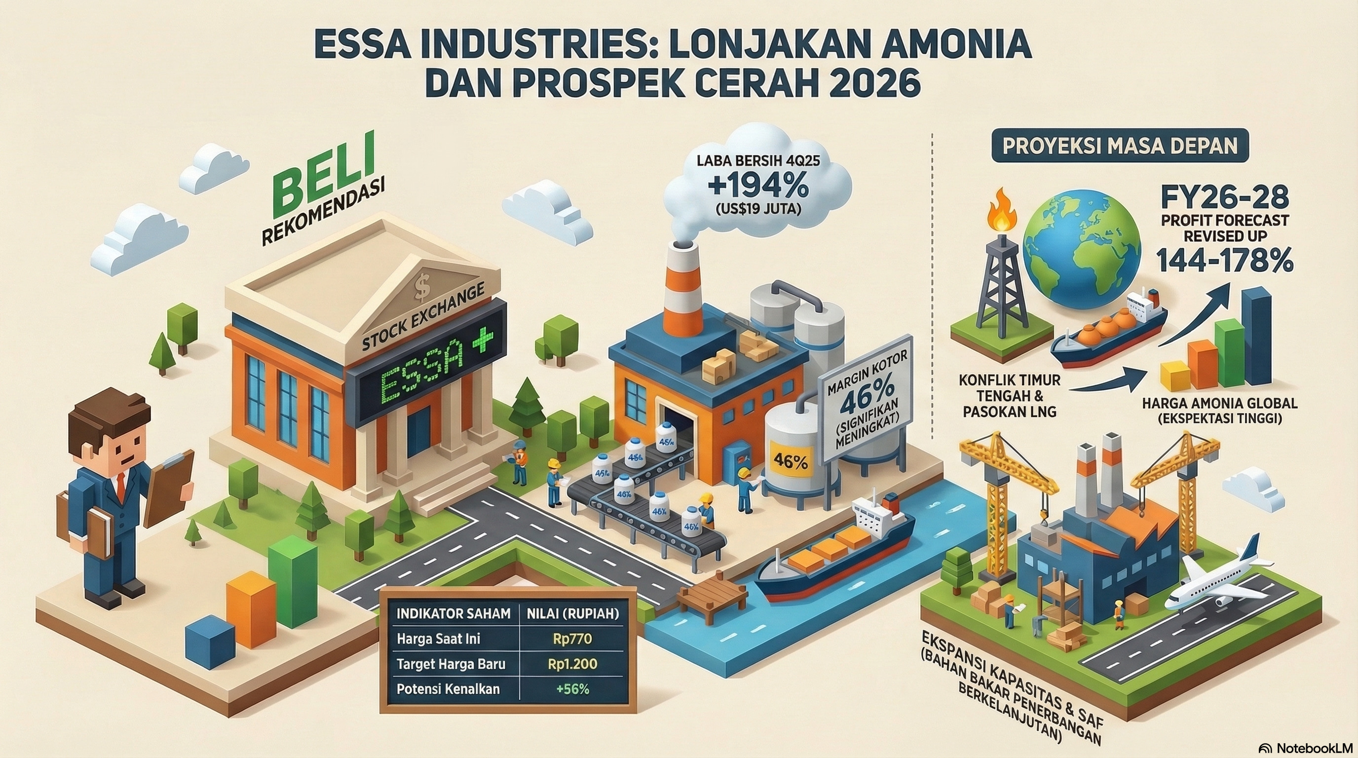 Jadi, ESSA berada dalam posisi yang sangat bullish karena sensitivitas harga amonia terhadap gangguan pasokan gas global, yang akan menguntungkan margin keuntungan perusahaan secara signifikan di tahun 2026.