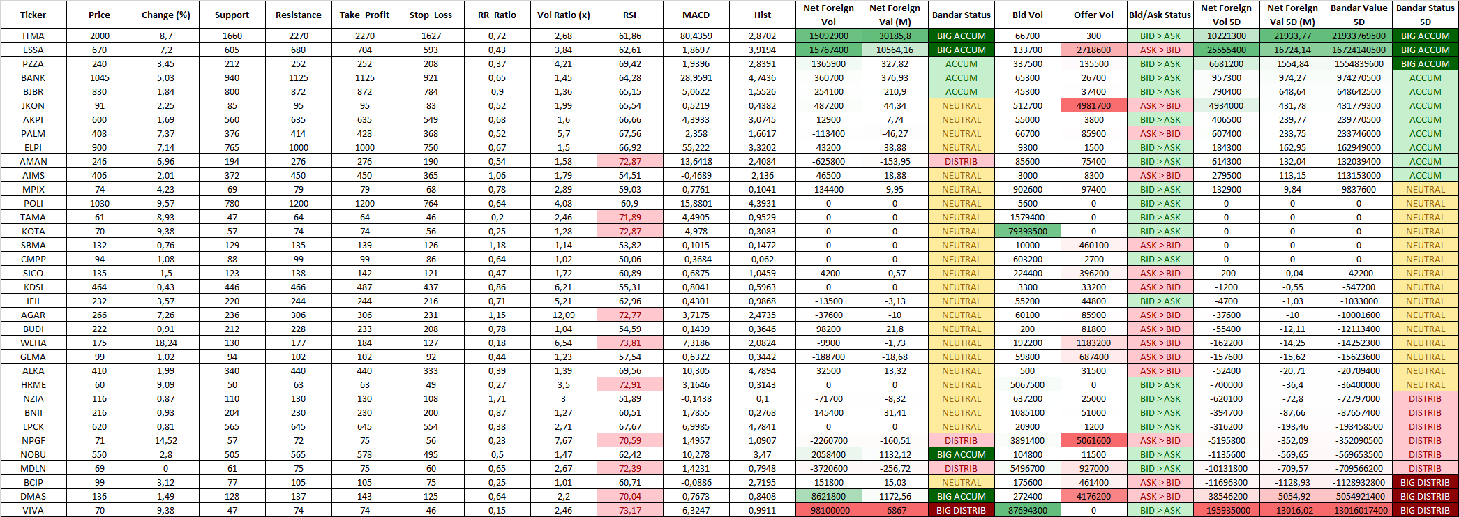 - Indikasi : Minat beli terbatas, belum terlihat akumulasi kuat