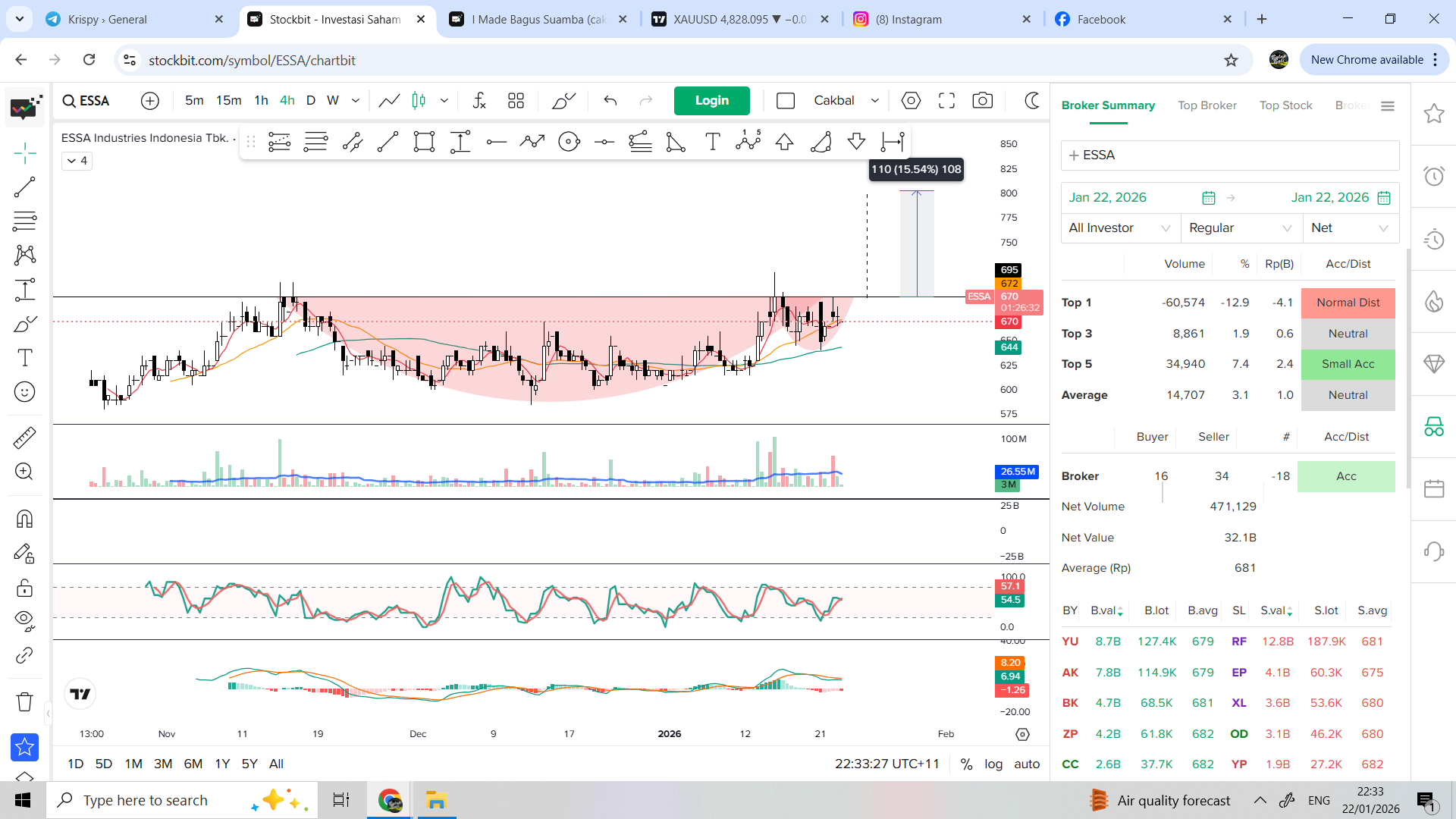 perjalanan ESSA sih masih panjang. Harga kemungkinan masih akan menguji level MA jangka menengah di 640, sampai yang jualan habis barang.