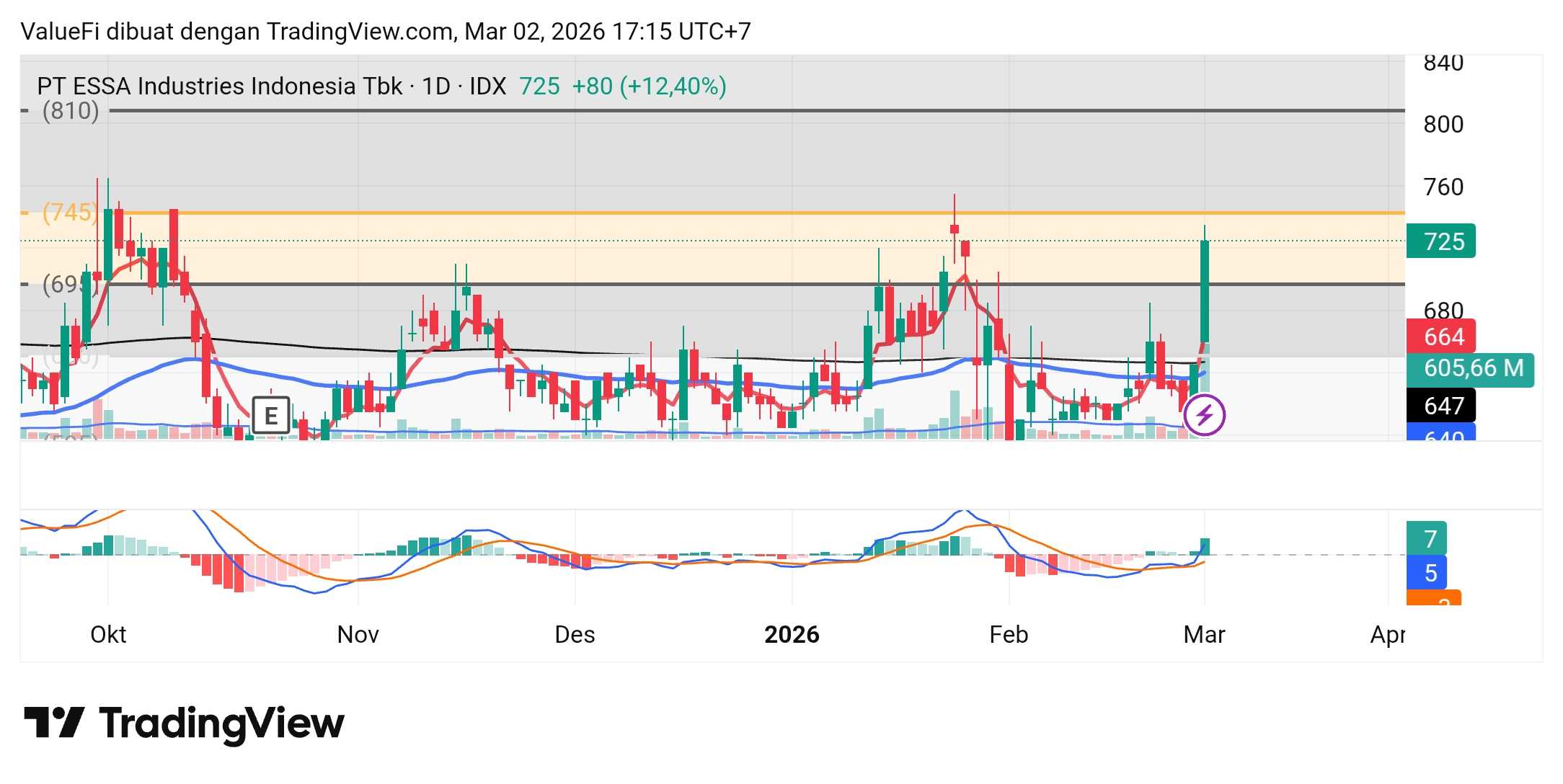 ESSA adalah emiten energi & kimia yang mengoperasikan kilang LPG (Liquefied Petroleum Gas) dan pabrik amonia terbesar di Indonesia, melayani kebutuhan LPG industri & rumah tangga serta bahan kimia industri.