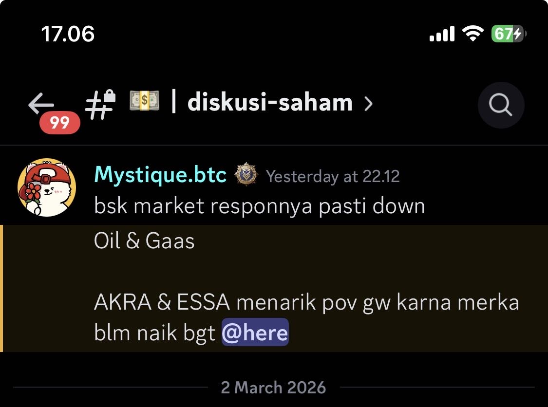 Kalau konflik makin panas → market bisa risk-off dulu sebelum rally sektor.