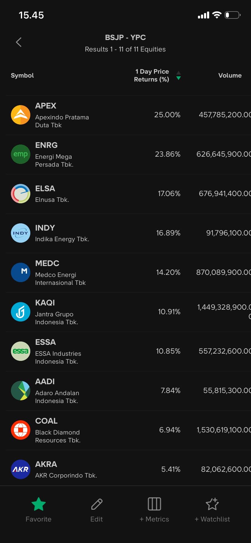 Saham² yang kemaren masuk ke Screener BSJP di dominasi saham² Minyak/ Gas, Gold, Komoditi, optimis hari ini?