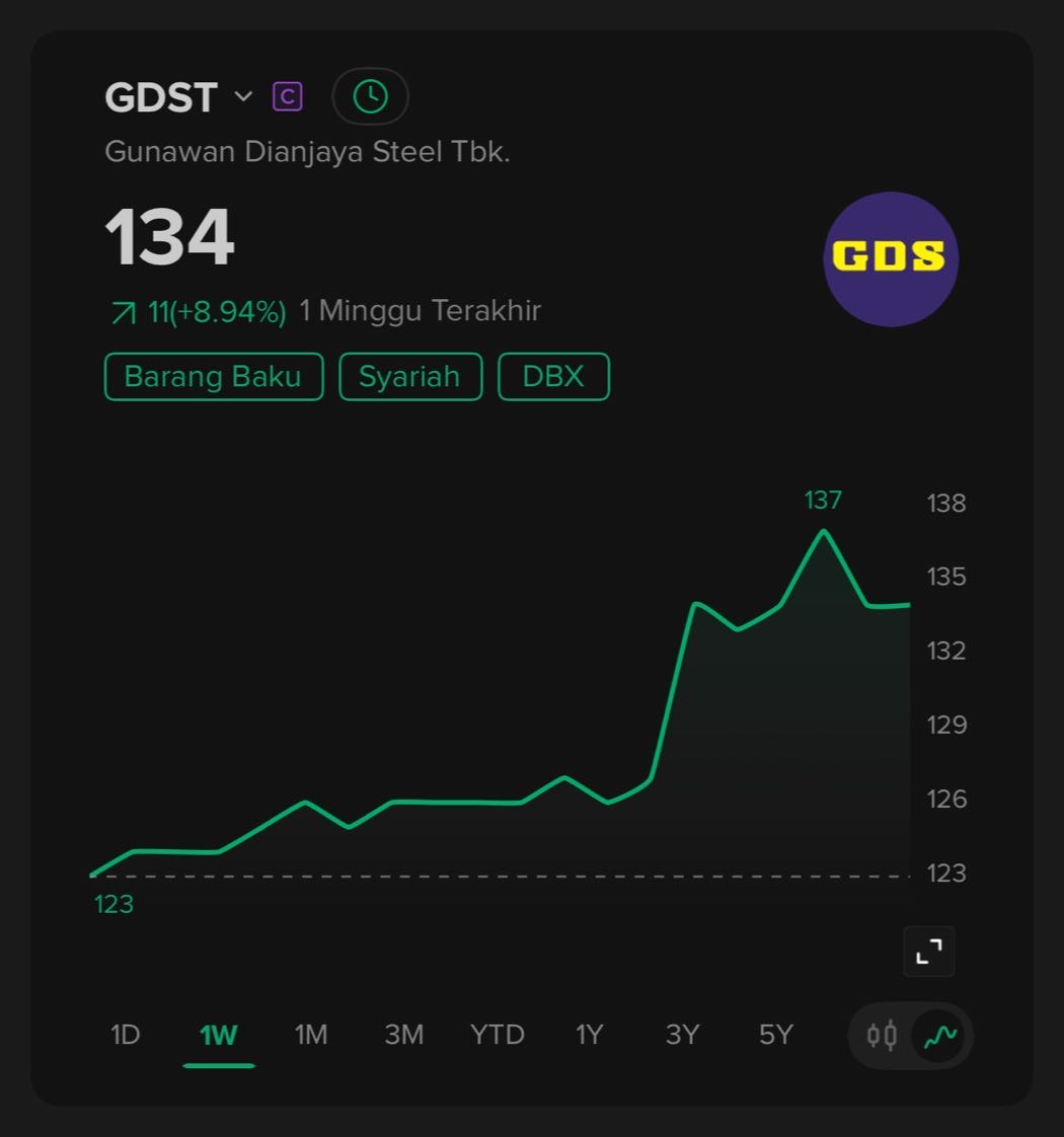 ketika emiten basic material seperti $INAI dan $IFSH, maka ledakan emiten basic material $GDST tinggal menunggu waktu saja.