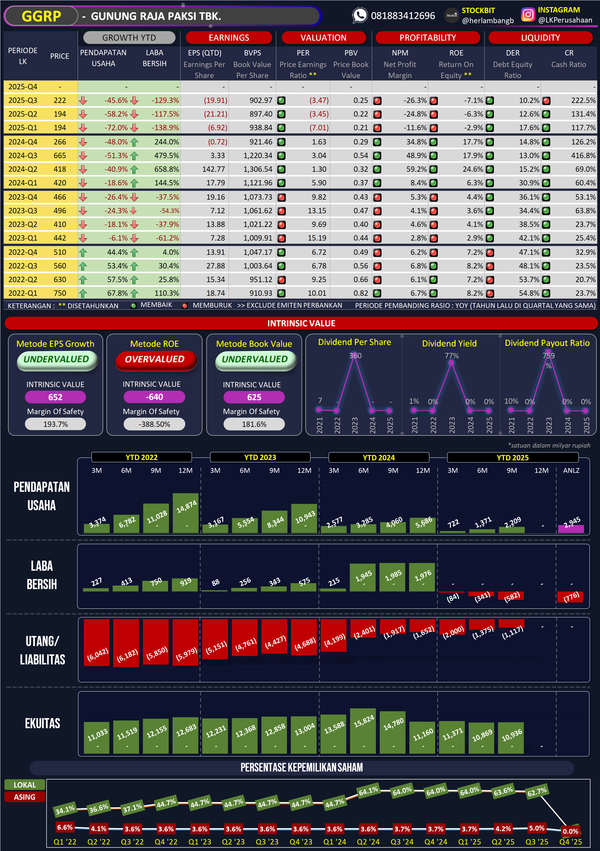 $GGRP ekuitas bertambah, liabilitas berkurang, aktivitas operasional positif, aktivitas investasi positif, hanya aktivitas keuangan yang negatif karna bayar utang. Lebih baik dari LKQ3