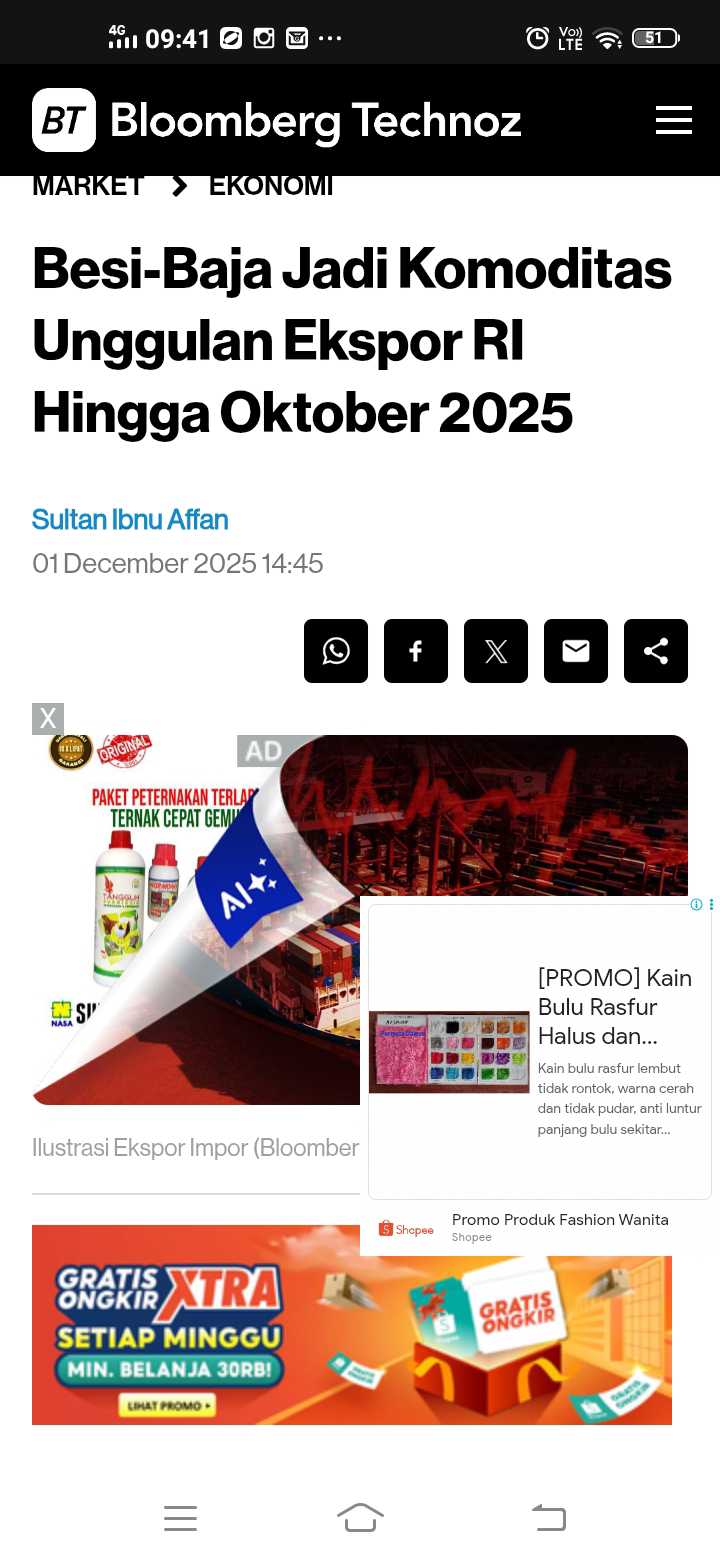 Badan Pusat Statistik (BPS) mencatat kinerja ekspor besi dan baja Indonesia menunjukkan tren positif sepanjang periode Januari hingga Oktober 2025.