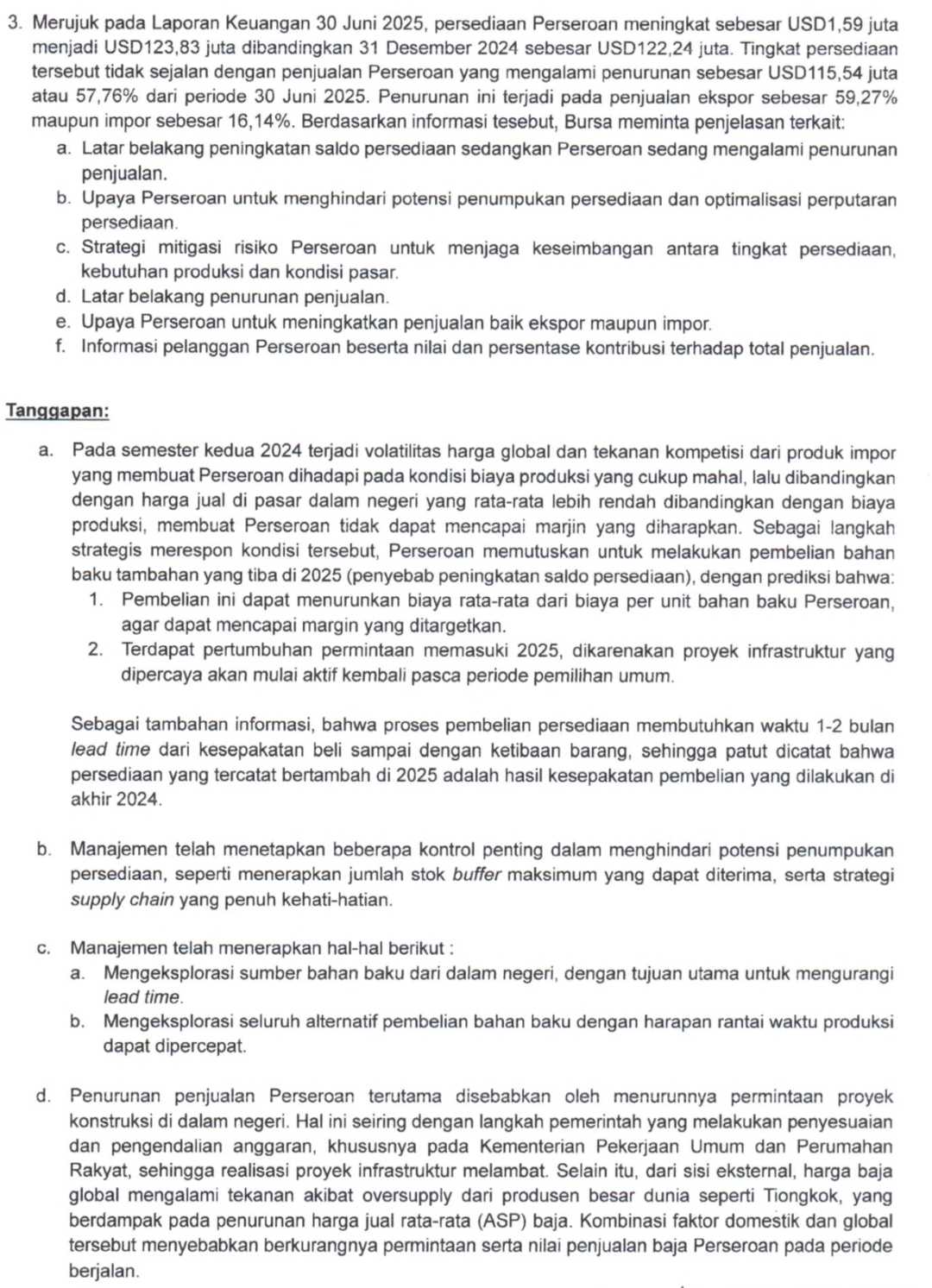 - Sentimen sektor baja masih fluktuatif mengikuti harga global