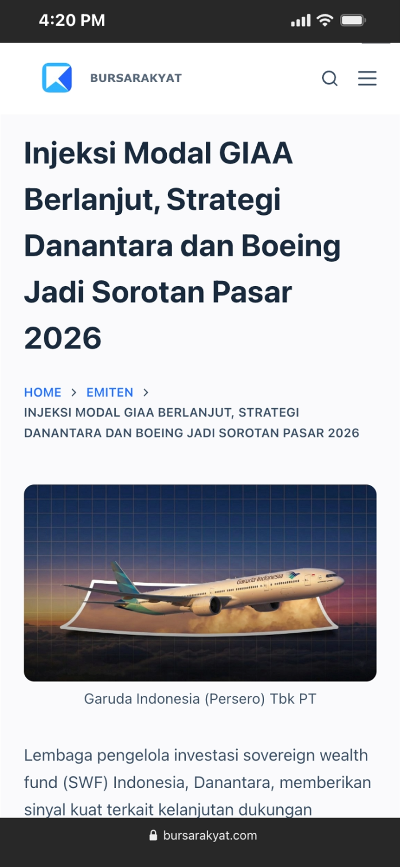 KABARBURSA.COM - Danantara Indonesia membuka kemungkinan untuk kembali menyuntikkan dana segar ke PT Garuda Indonesia Tbk (GIAA). Sebelumnya, lembaga ini telah memberikan modal sebesar USD1,4 miliar atau sekitar Rp23 triliun pada November 2025 silam.