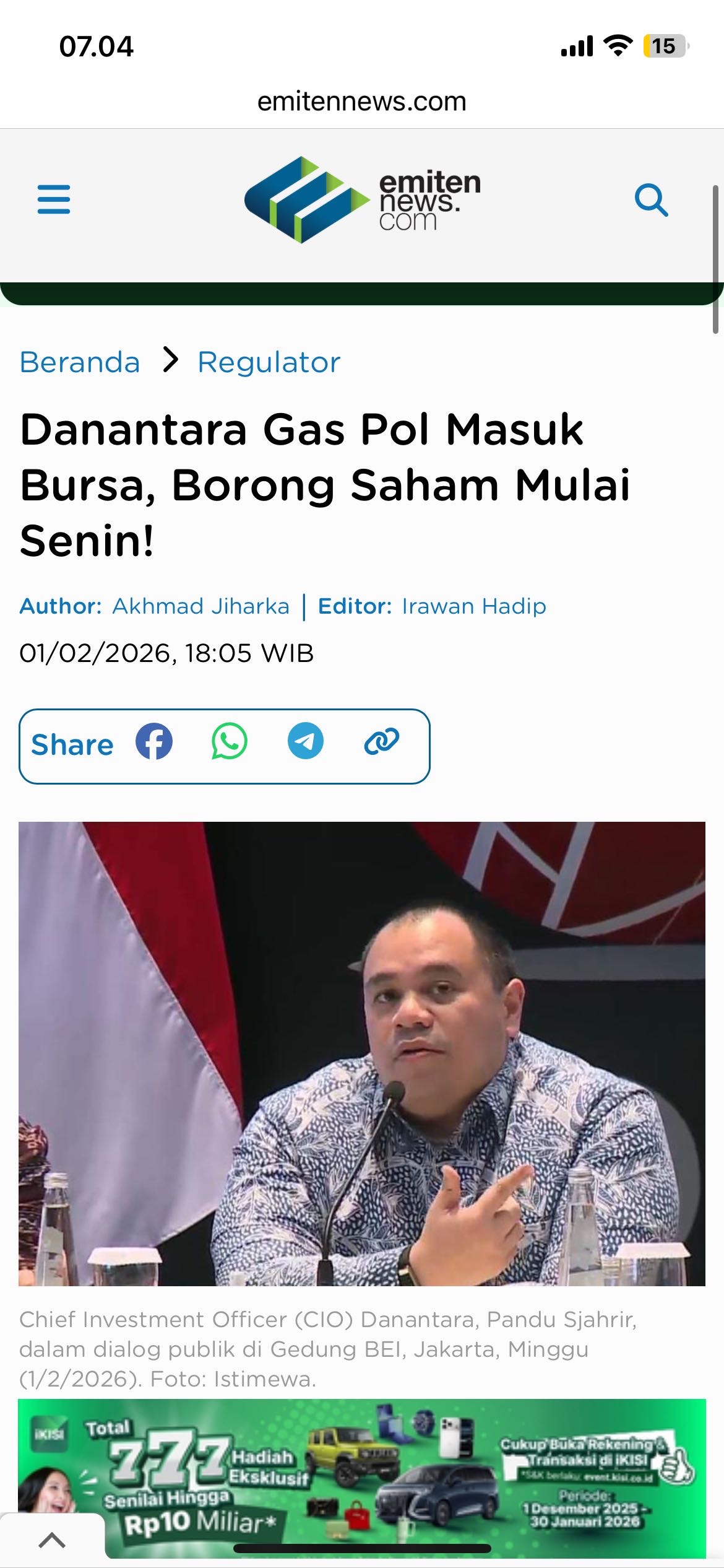 * **Support Kuat:** Rp1.040. Selama harga bertahan di atas ini, aman untuk *hold*.