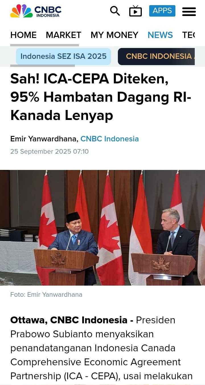 ✔️ Perjanjian ini ditandatangani di Ottawa, Kanada, pada Rabu, 24 September 2025, waktu setempat, dan dikonfirmasi di Jakarta pada 25 September 2025.