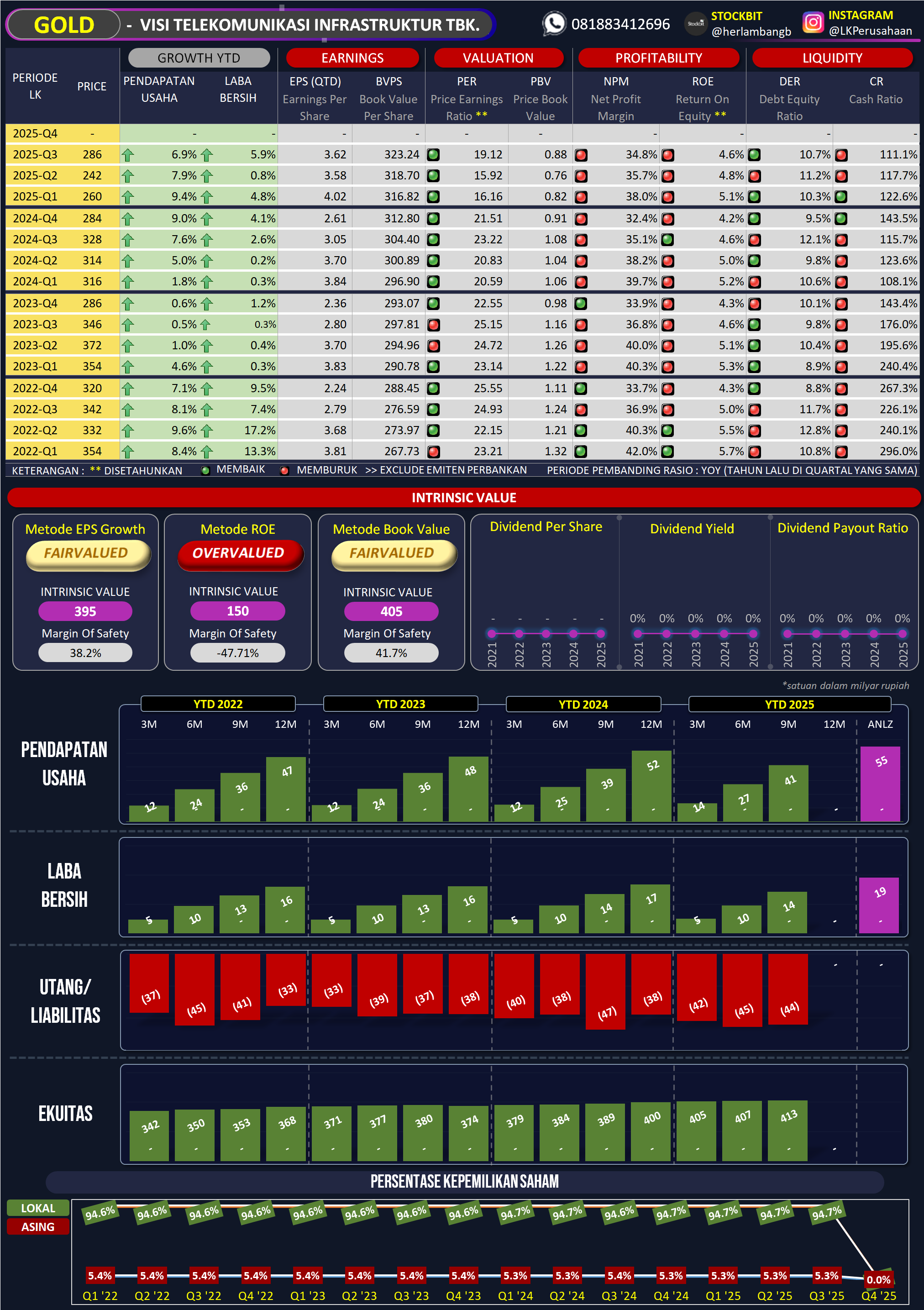 Kontrak aktif USD249 juta (Rp4T) serta deal baru offshore drilling USD13,6 juta dari PHM (+7 bulan, Oktober 2025), backlog utilisasi rig offshore tinggi, kas positif, liabilitas menurun, outlook Q4 positif.