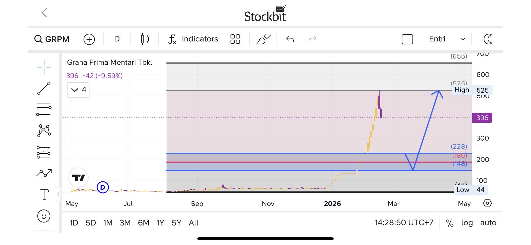 $GRPM-W jangann dibelii hati hati semua liat induknya $GRPM lagi lock arb gitu dikunci lagi besok turun lagi itu liat aja chart nya siap meluncur gitu masuk warannya malah resiko tinggi banget apalagi arbnya 50% jangan pada masuk disini banyak ritel nyangkut pada pompom biar bisa exit