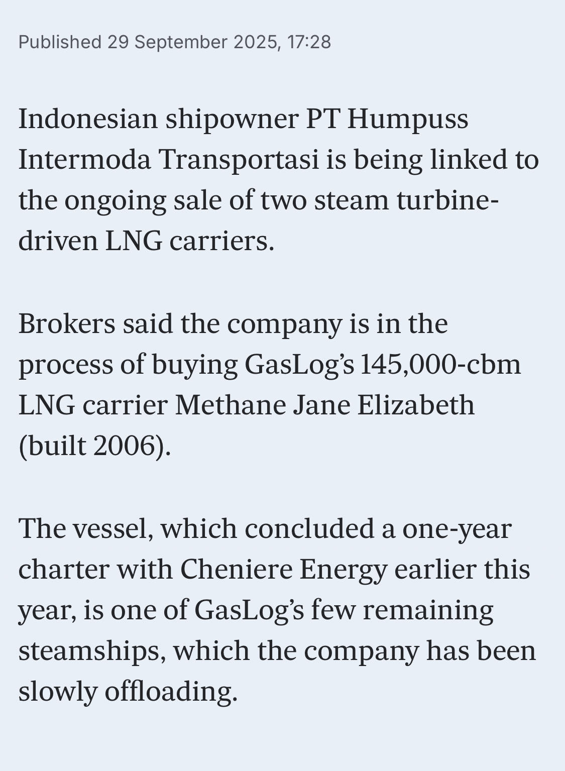 $GTSI ada isu beli dua kapal LNG carrier. Saat ini udah punya dua kapal, jd kapasitas angkut kira2 jadi 2x lipat.