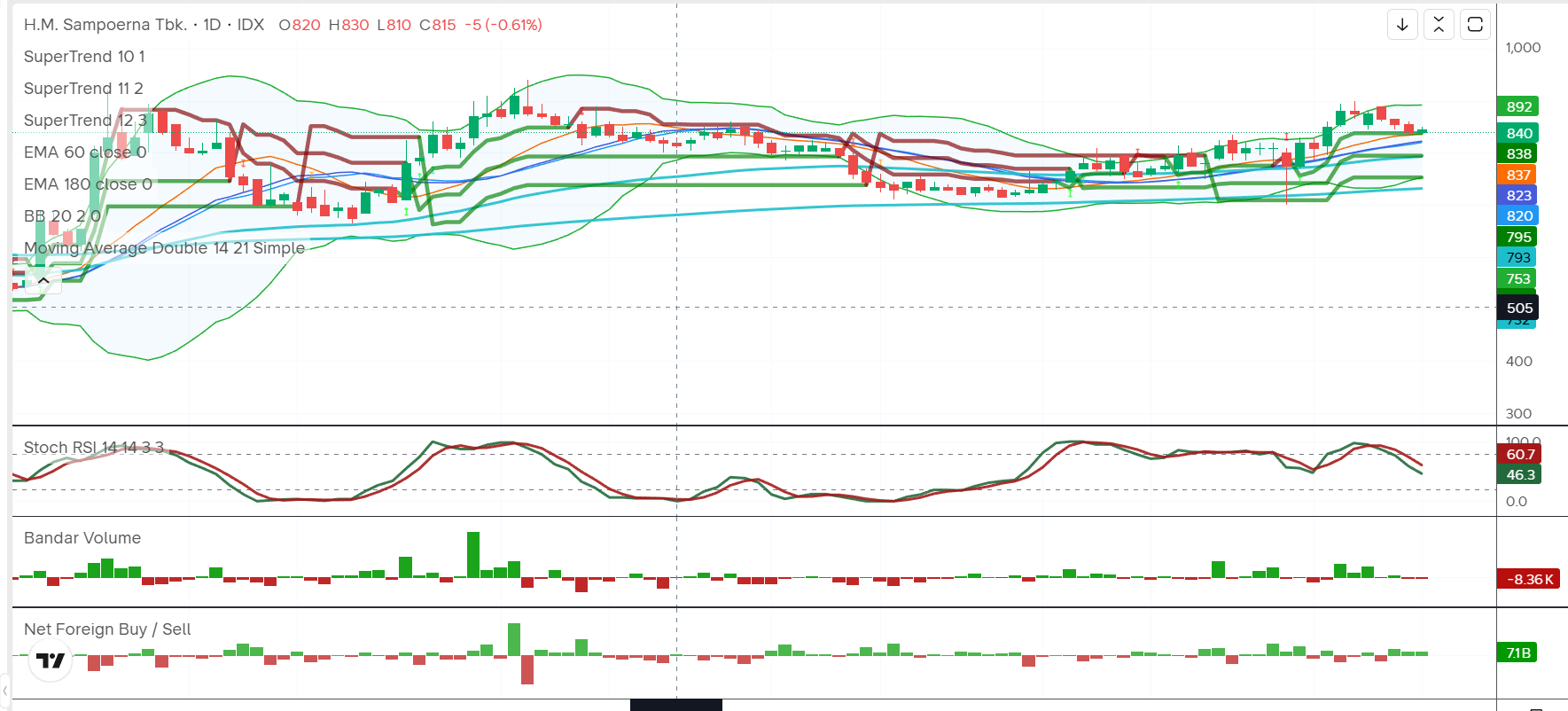 - HMSP layak untuk swing rebound selama bertahan di atas support kunci 780