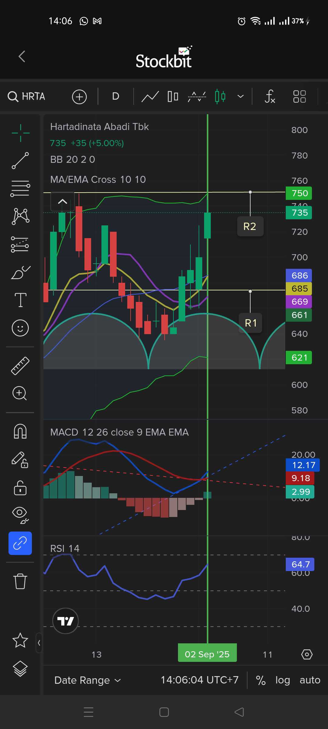 Support kuat di level 753, dengan harga yang menunjukkan momentum kenaikan.