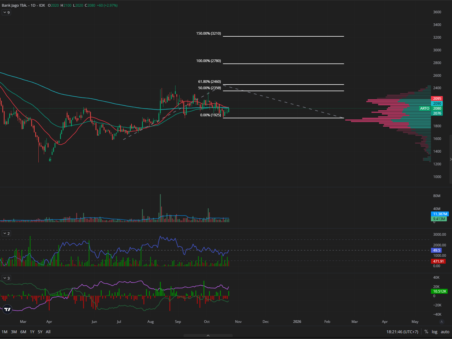 🔎 Stochastic Slow di 50,00 (netral setelah breakout), CCI di 76,51 (tinggi), Volume 503.045K (+4114,17%) → volume spike ekstrem konfirmasi breakout sangat kuat.