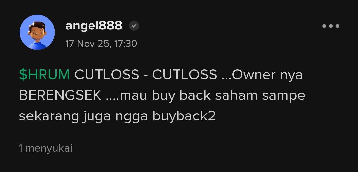$HRUM jangan terlalu dengerin kata orang. invest mah invest aja. badut ini bener bener badut. makin dia yapping makin seru. hahahaha