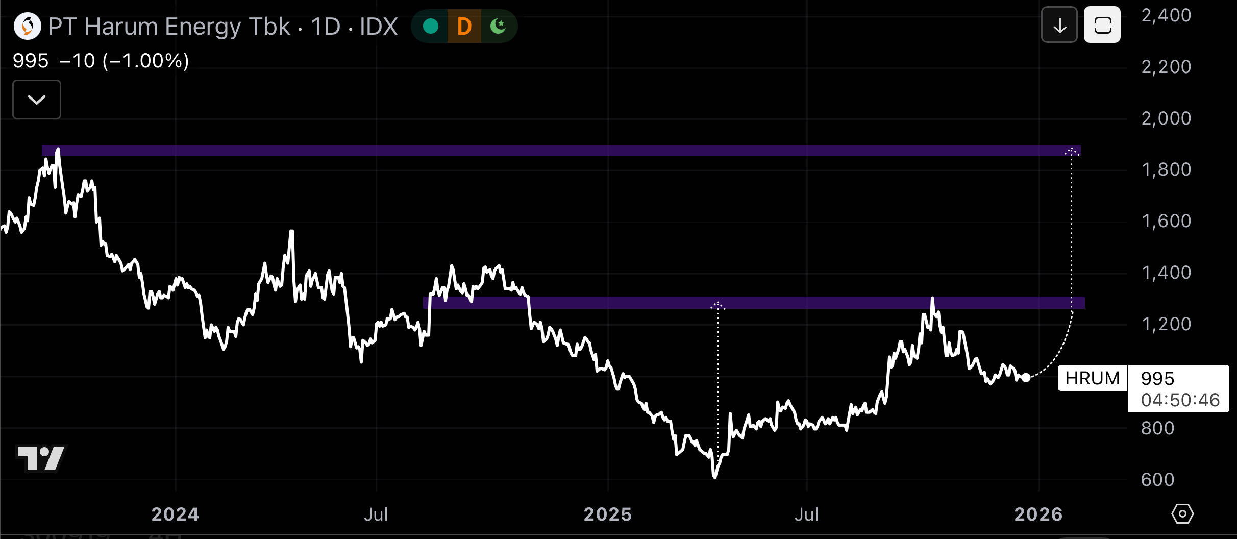 $HRUM emiten di masa buyback gak usah dilihat. Gak akan kemana mana. Tapi menjelang akhir buyback (2 Jan 2026), emiten satu ini boleh masuk watchlist ketat....